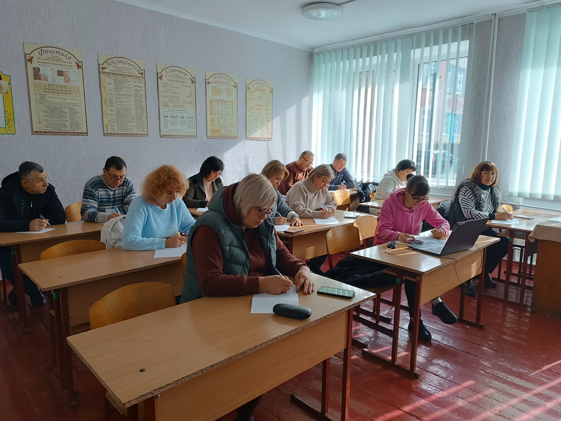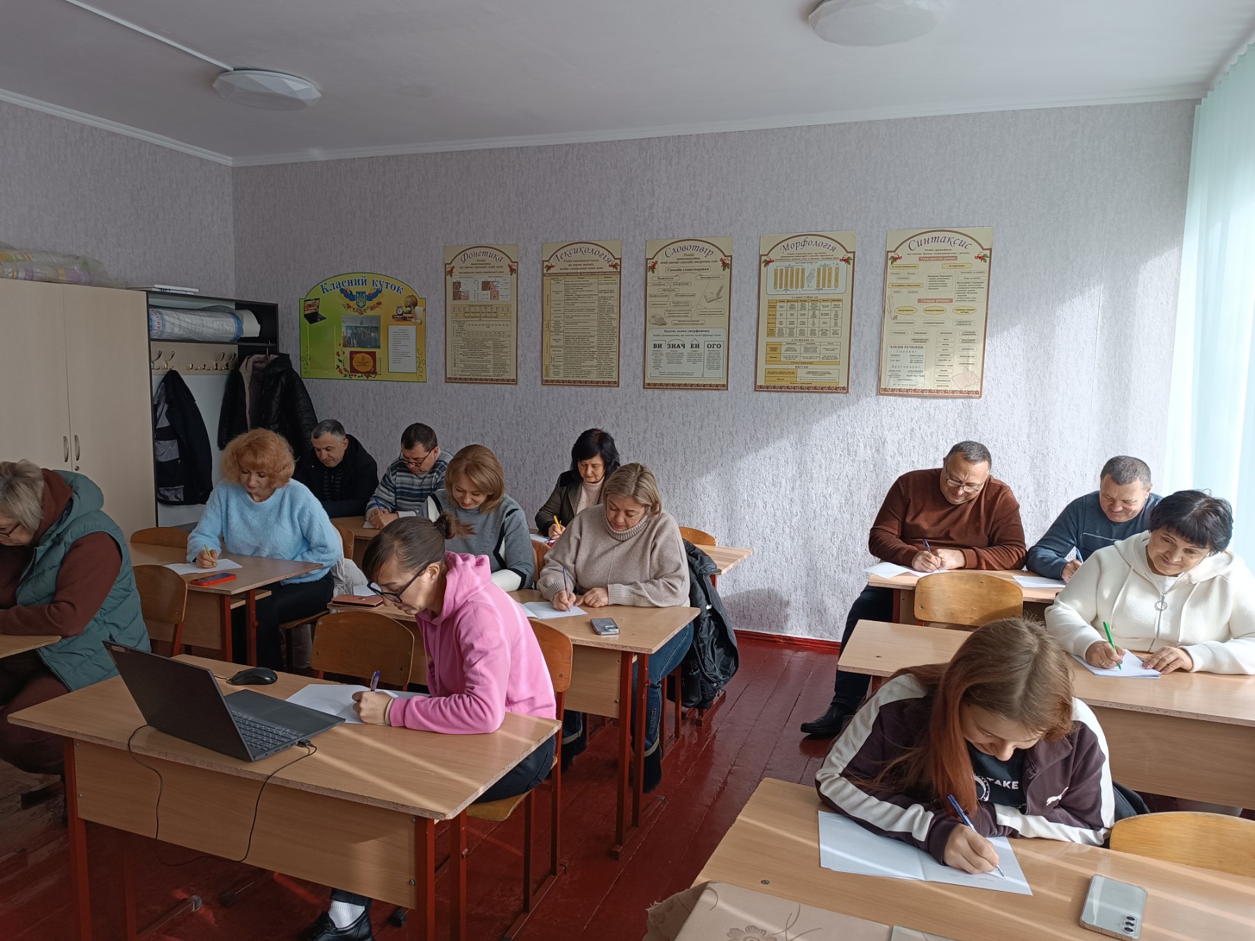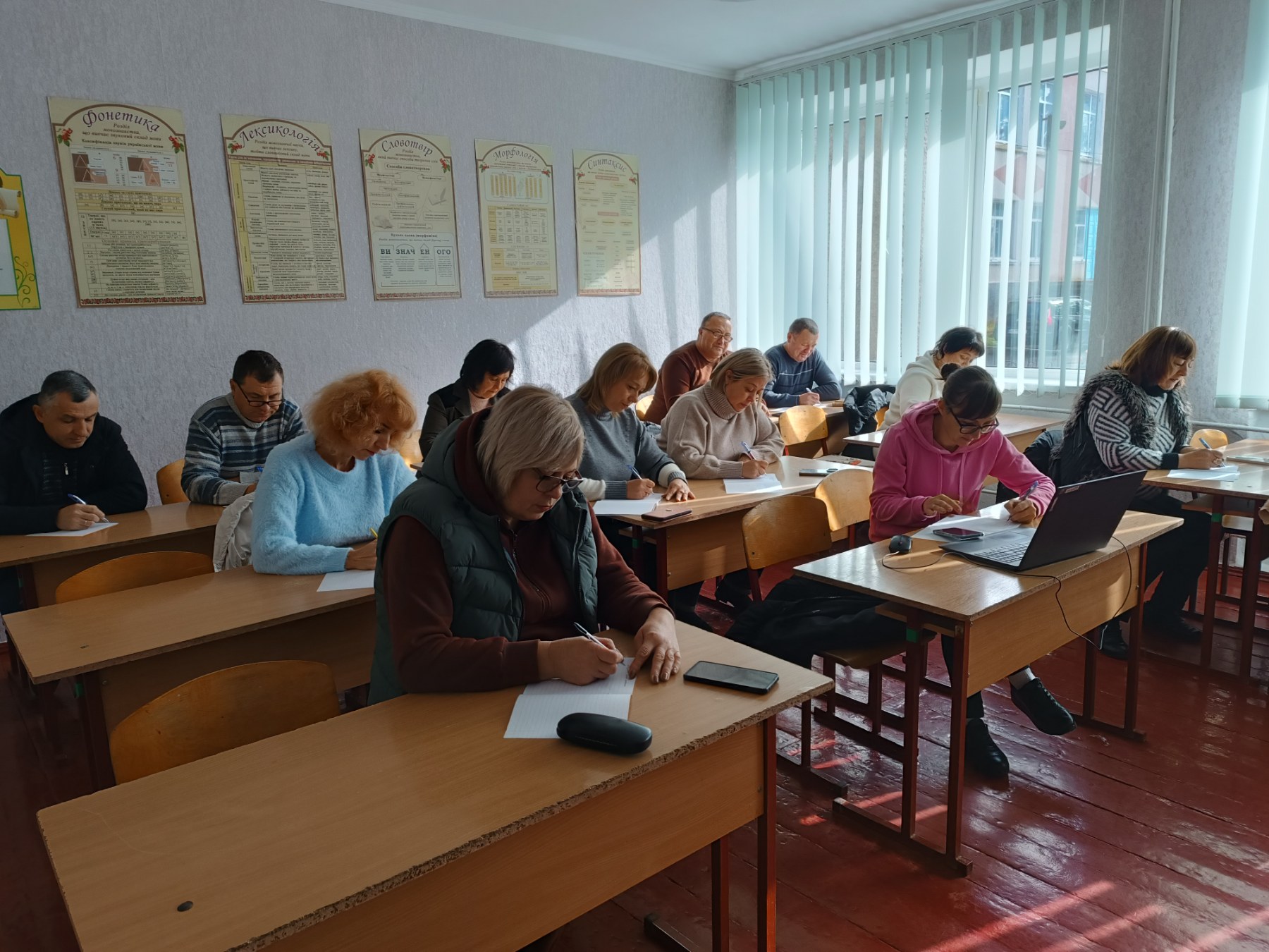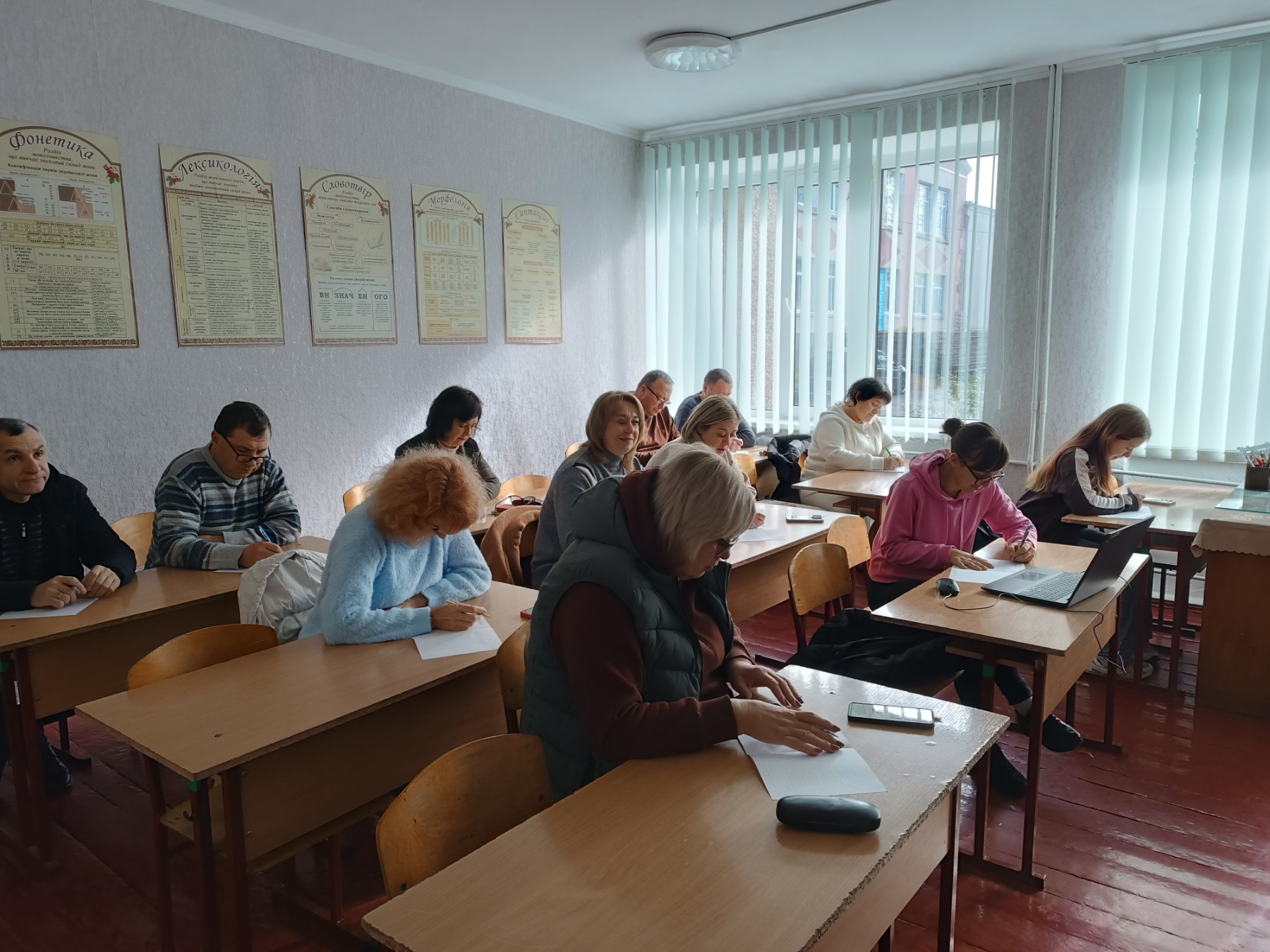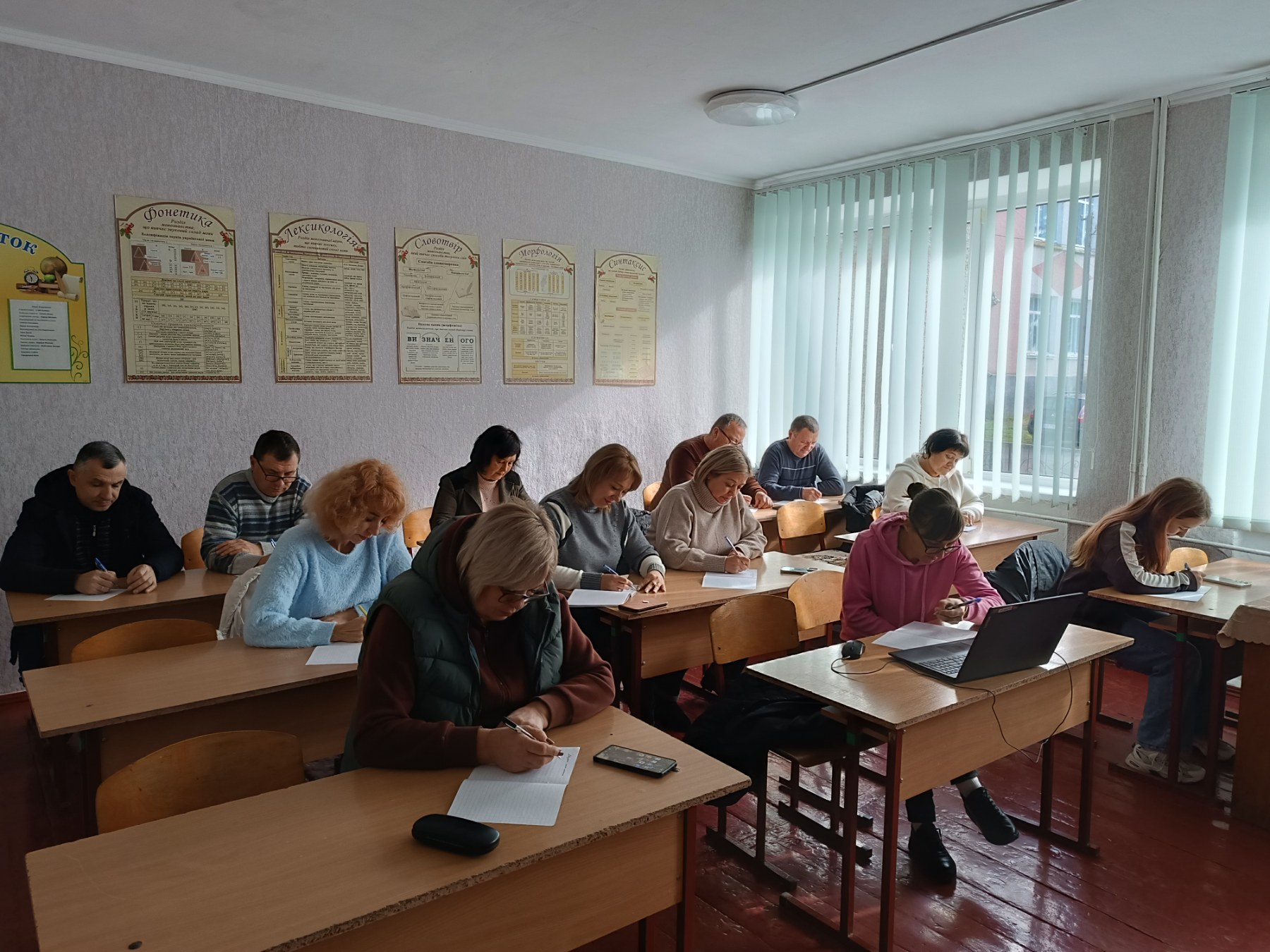 У затишному кабінеті української мови та літератури панувала зосереджена тиша. Кожен учасник ретельно виводив кожне слово, вслухаючись у голос диктора – народної артистки України Наталії Сумської.