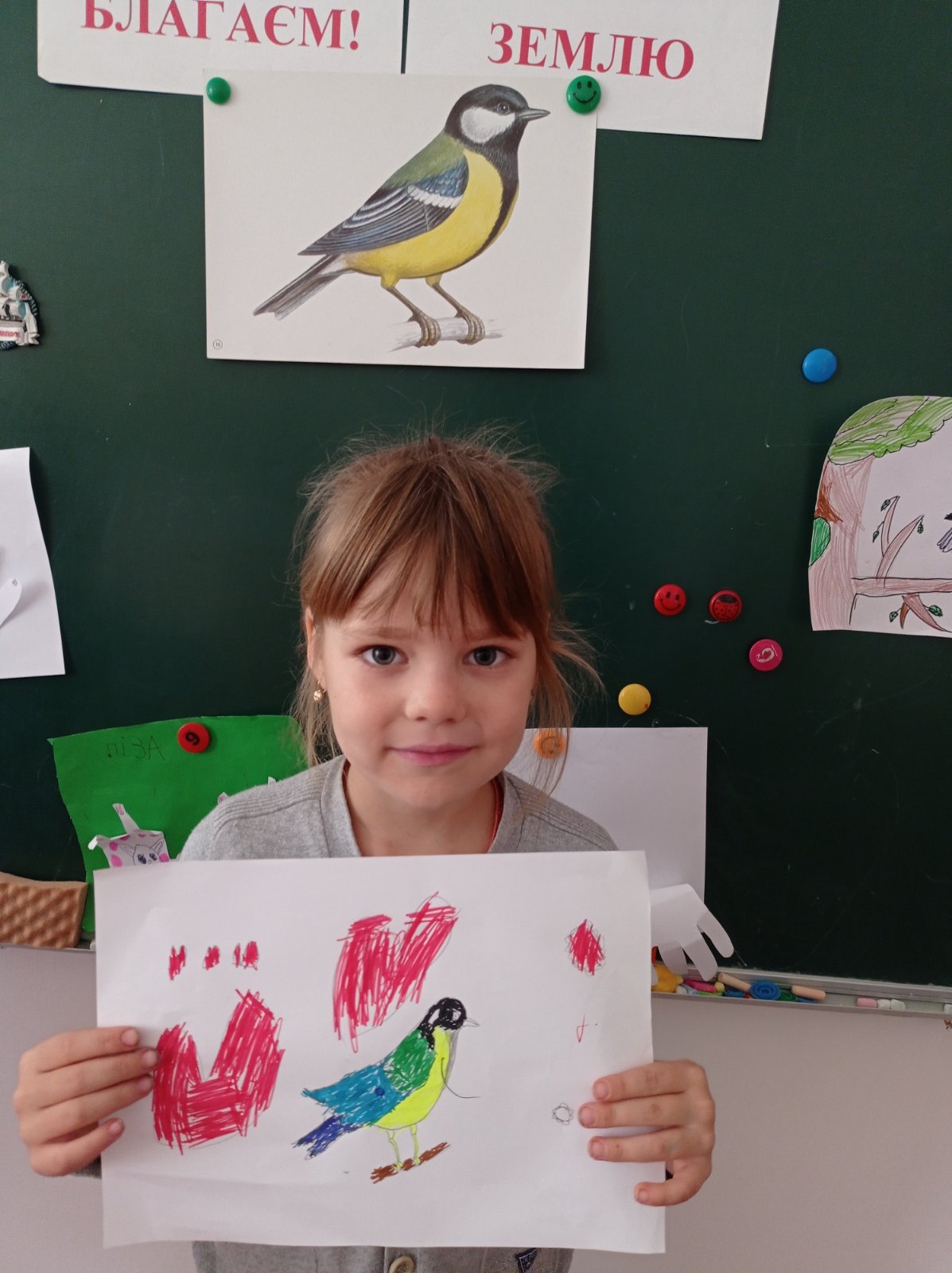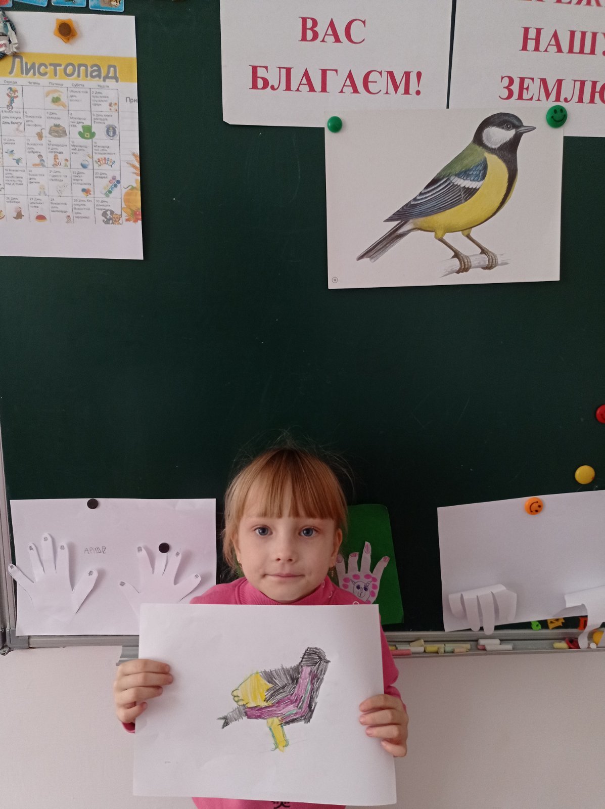 Діти з великим ентузіазмом намалювали яскраві малюнки синичок, аби привернути увагу до цих маленьких, але дуже корисних пташок. Кульмінацією дня стало розміщення годівничок на шкільному подвір'ї, які першачки одразу ж наповнили смачним зерном.
